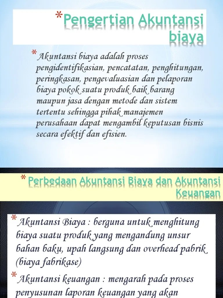 Akuntansi keuangan, akuntansi biaya dan. Transcript of bahan ajar akuntansi biaya.pptx. Slide 1 penggolongan biaya menu utama berdasarkan hubungan dengan produk: Bab 1 akuntansi biaya dan pengertian biaya.ppt (3,460kb). Modul ini untuk dipergunakan oleh program studi akuntansi dan manajemen.